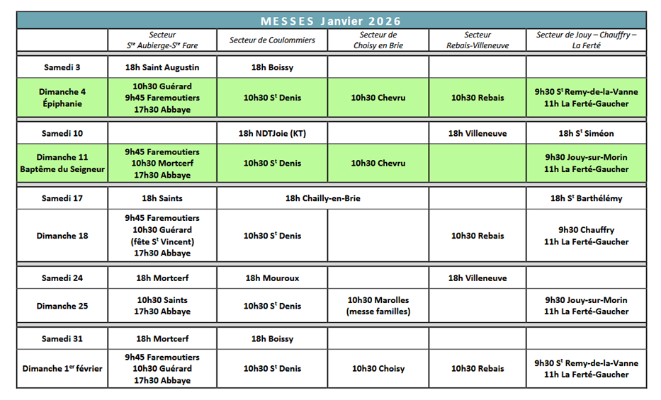 Jeudi 9 h à l’église de La Ferté-Gaucher précédée des Laudes à 8 h 30